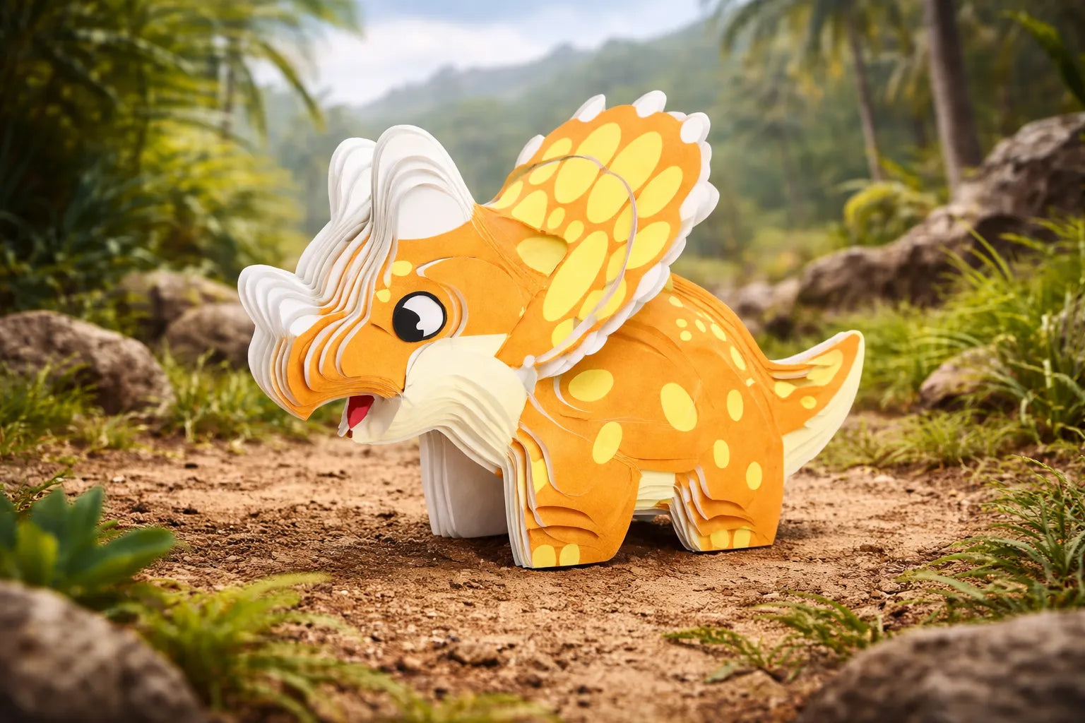 🦏 Symbole de force protectrice, de stabilité et de courage tranquille, le Tricératops s’incarne dans cette maquette 3D en bois à assembler soi-même. Chaque pièce s’emboîte avec précision pour révéler sa silhouette massive, ses trois cornes emblématiques et sa collerette imposante, incarnation de la résistance et de la solidité ancestrale.